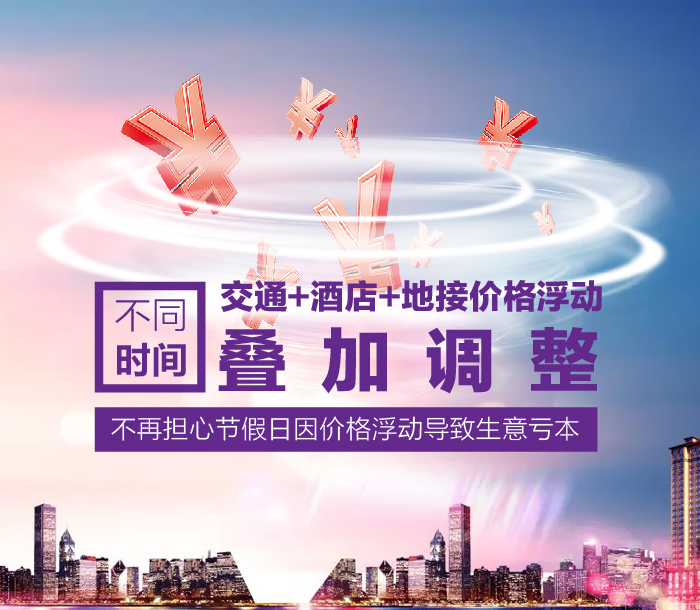 價(jià)格更新軟件再添雙翼,浮動價(jià)格多個時間段可以疊加調(diào)整,滿足不同時間段,交通,酒店,地接價(jià)格的不同浮動需求,不再擔(dān)心節(jié)假日因價(jià)格浮動導(dǎo)致生意虧本了,特別的功能給特別的您!。